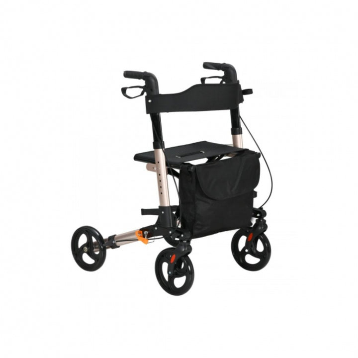 Este andador de 4 ruedas te proporcionará la máxima comodidad ya que incluye un asiento con respaldo, para que puedas descansar siempre que lo necesites. También contiene una bolsa de la compra, para que puedas hacer cualquier tipo de recado sin preocuparte por cargar los objetos. Además, dispone de un portamaletas para que puedas llevarlas contigo y con tu andador de aluminio a donde quiera que vayas.