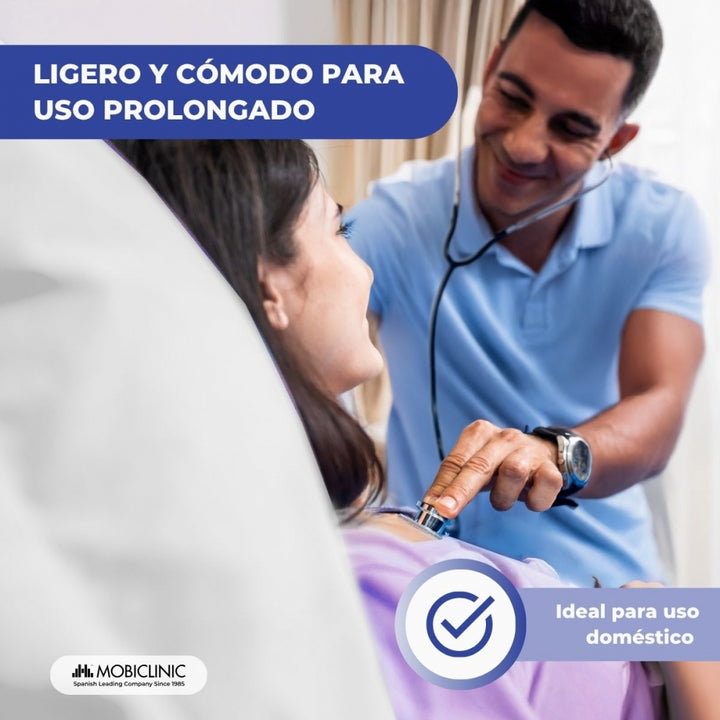 Se trata de un fonendoscopio negro de doble campana fabricado en aluminio y que se caracteriza especialmente por ser ligero, fácil de transportar y muy económico. Además, el producto está libre de látex. Este modelo de estetoscopio ofrece unas prestaciones imprescindibles para el buen hacer del profesional sanitario, como son unas propiedades acústicas realmente precisas para el diagnóstico más fiable.