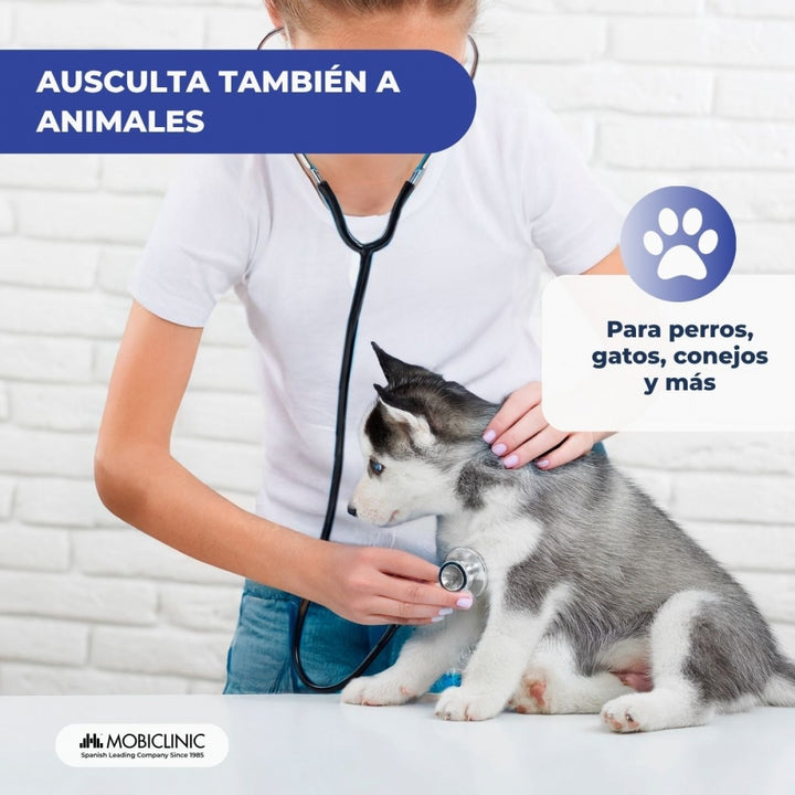 También puede ser usado en el ámbito veterinario para auscultar animales como perros, gatos, conejos, etc.