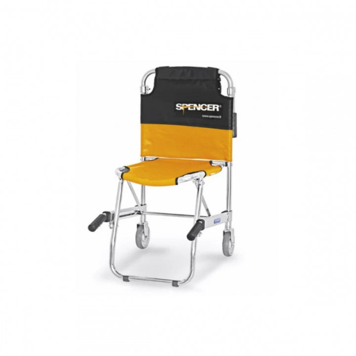 La silla de evacuación Spencer 420 destaca por su estructura ultraligera, con un peso de poco más de 10 kg gracias a la tecnología Spencer Space Frame, lo que facilita su manejo por parte del personal sanitario. Su diseño moderno incluye un asiento cómodo y un respaldo regulable en altura para mayor estabilidad del paciente. Cuenta con un innovador sistema de cierre por deslizamiento que permite compactarla fácilmente, además de asas traseras plegables y frontales telescópicas que mejoran su portabilidad. Su chasis soldado, junto con el acabado en pintura brillante o epoxi, le otorgan gran resistencia. Está fabricada con láminas de PVC fáciles de limpiar, ideales para un uso higiénico e intensivo en situaciones de emergencia.
