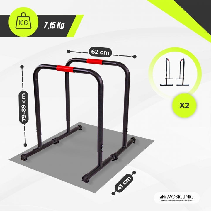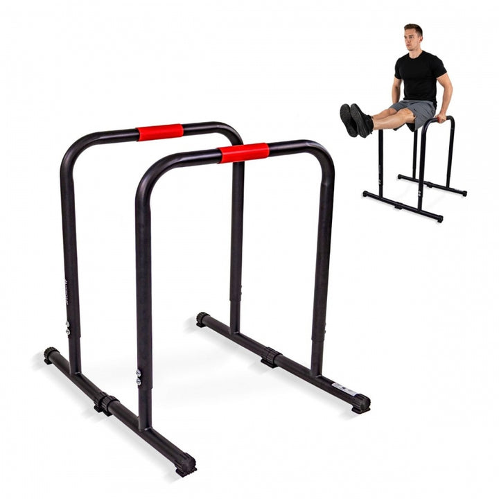 Le parallele Twins sono perfette per chi cerca un allenamento completo e versatile senza dover andare in palestra. Grazie alla loro altezza regolabile, si adattano a diverse esigenze, altezze e livelli di esperienza dell'utente. Questo consente di eseguire una varietà di esercizi, dai dip e flessioni profonde agli esercizi per addominali, gambe e equilibrio.