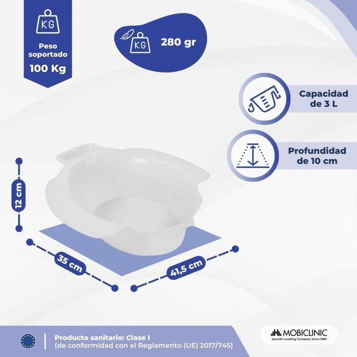 Realizzato in polipropilene, questo bidet è stabile, resistente e leggero. Con un peso di 280 grammi e una capacità di 4 litri, consente una pulizia ottimale con acqua calda. La sua profondità di 10 cm è perfetta per un'immersione confortevole, senza il rischio di fuoriuscite. Facile da riporre e trasportare, è perfetto per l'uso domestico o in clinica.