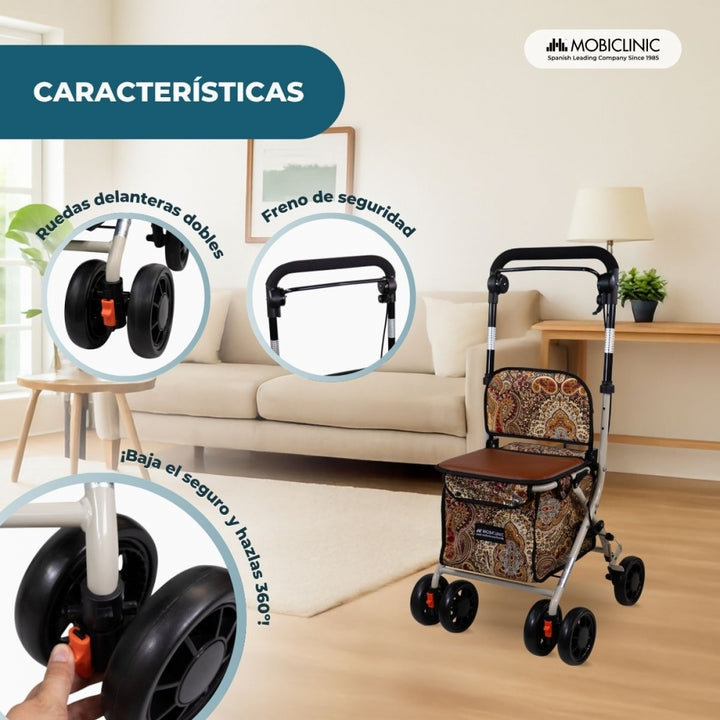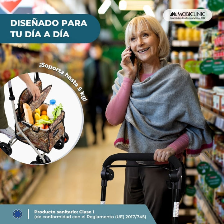 Il carrello spesa deambulatore Coliseo è progettato sia per passeggiare che per fare la spesa nel modo più semplice possibile per qualsiasi tipo di persona, prestando particolare attenzione alle persone anziane o con mobilità ridotta.