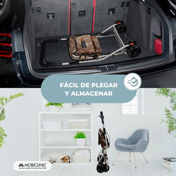 Il carrello spesa deambulatore Coliseo è anche pieghevole, il che ci permette di riporre il carrello in qualsiasi armadio occupando poco spazio in casa.