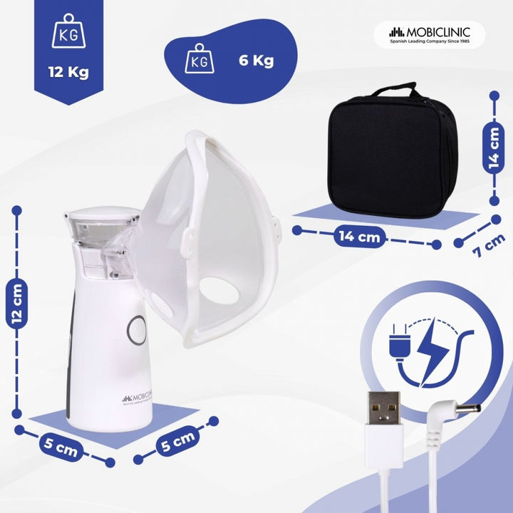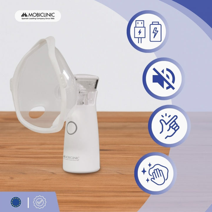 Questo nebulizzatore può essere utilizzato in modalità wireless, a batterie, o collegato a una presa di corrente tramite USB (inclusa). Questo lo rende ideale per l'uso ovunque e garantisce un funzionamento sicuro. Il suo funzionamento è intuitivo, con un solo pulsante, adatto a qualsiasi utente. Inoltre, il suo sistema "push" consente una facile rimozione del misurino per garantire una pulizia e un'igiene adeguate.