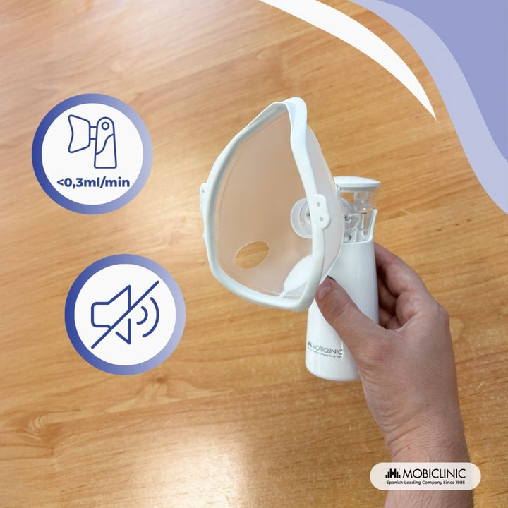 Questo kit completo e adattabile include un boccaglio, una maschera per adulti e una maschera per bambini, ideale per tutta la famiglia. Il suo funzionamento silenzioso lo rende ideale per trattamenti notturni o per l'uso con i bambini. La sua nebulizzazione è uniforme ed efficace, con una velocità <0,2 ml/min, garantendo il massimo utilizzo del farmaco.