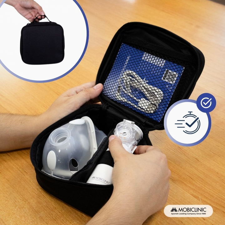 Questo nebulizzatore portatile a rete è la scelta perfetta per chi necessita di un trattamento respiratorio confortevole, efficace e conveniente. Il suo design leggero e compatto e la custodia lo rendono facile da trasportare e mantengono tutti gli accessori in ordine.