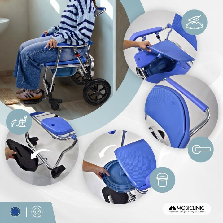 La sedia a rotelle comoda Babor è lo strumento perfetto per chi cerca comfort, sicurezza e indipendenza. Il suo design 3 in 1 le consente di essere utilizzata come sedia comoda, sedia da doccia o WC portatile, adattandosi alle esigenze di qualsiasi utente. Include un secchio rimovibile da 6,5 litri, facile da pulire, che garantisce un'igiene ottimale in ogni momento e riduce lo sforzo richiesto all'assistente.
